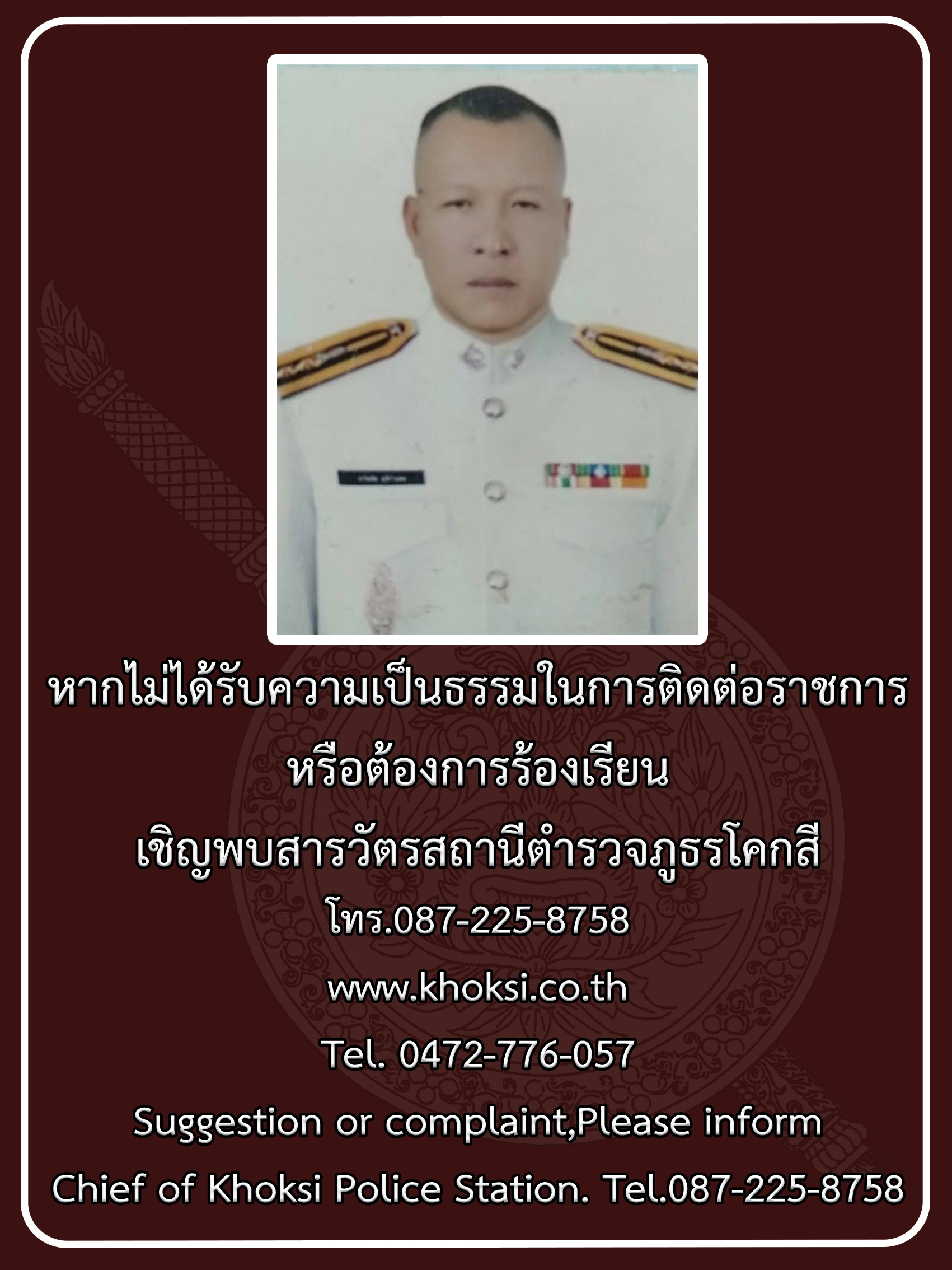 วันนี้ 11 ต.ค. 2567เวลา 11.30 – 12.30 น.👮♂️ พ.ต.ท.ธวัชชัย มุริจันทร์ สว. สภ.โคกสี (หัวหน้าสถา