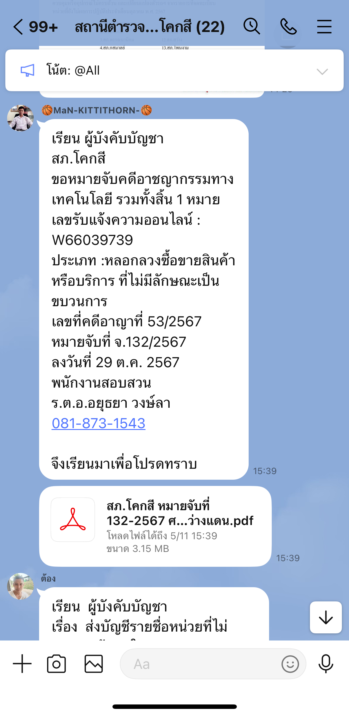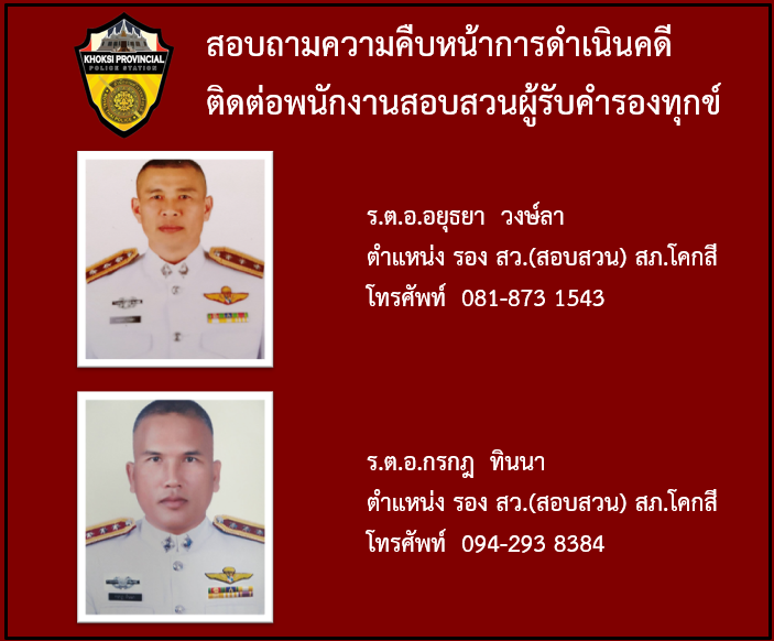 15 ก.พ.2568 เวลาประมาณ 14.30 น. ร.ต.อ.อยุธยา วงษ์ลา รอง สว.(สอบสวน) สภ.โคกสี ได้รับแจ้งจากศูนย์วิทยุ