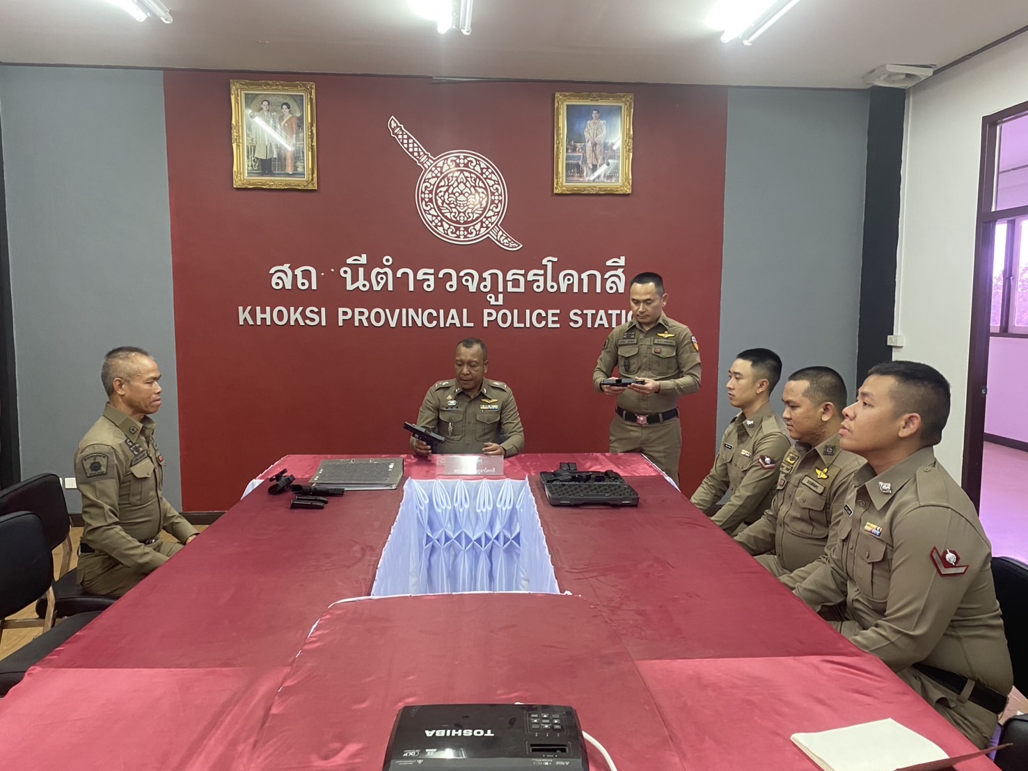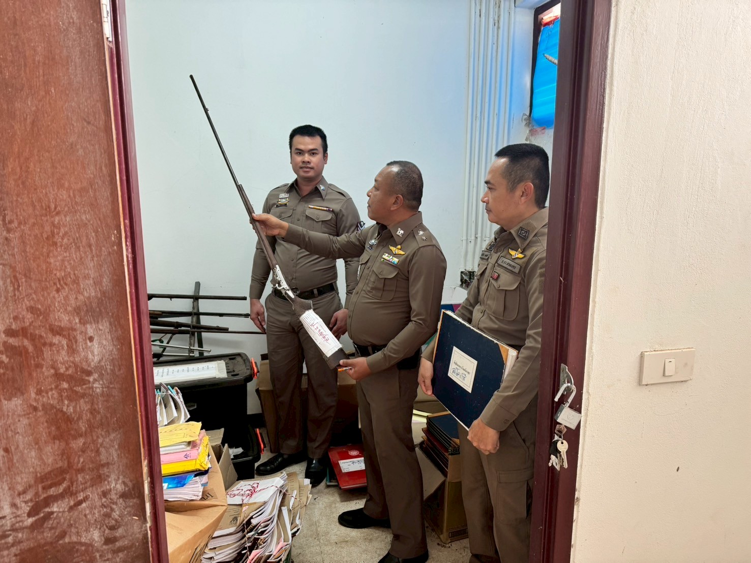 พ.ต.ท.ธวัชชัย มุริจันทร์ สว.สภ.โคกสี เรียกตรวจสอบการใช้ทรัพย์สินของทางราชการ โดยเฉพาะ อาวุธของทางราช