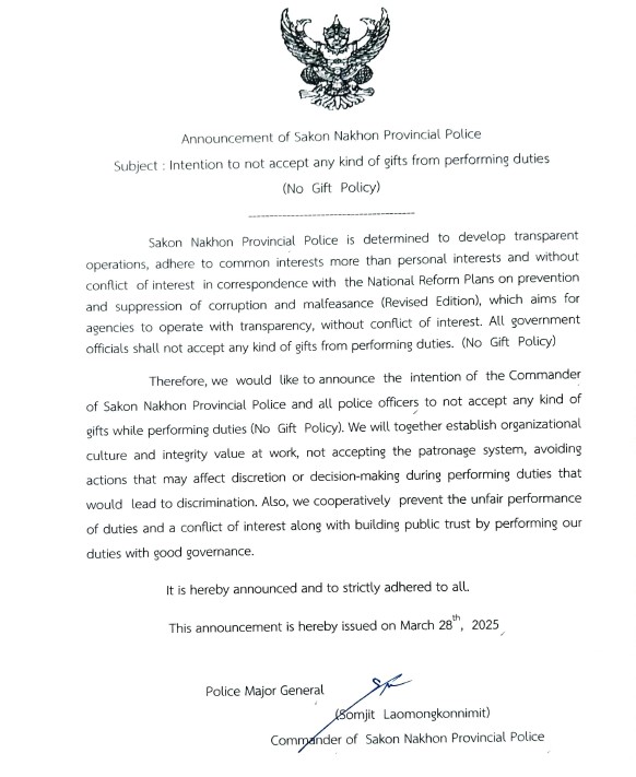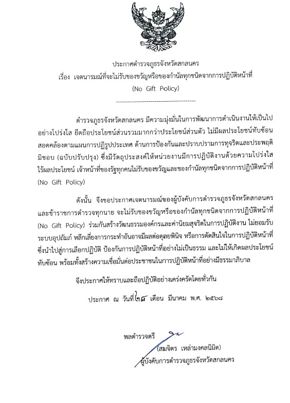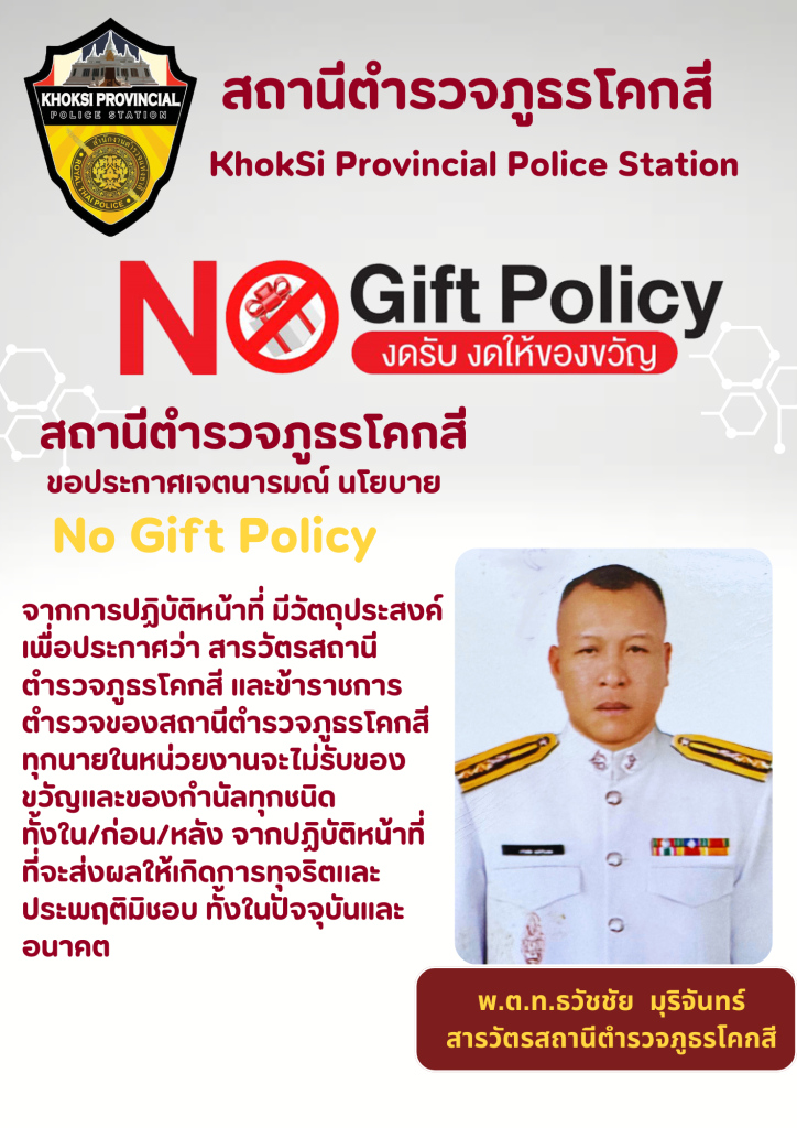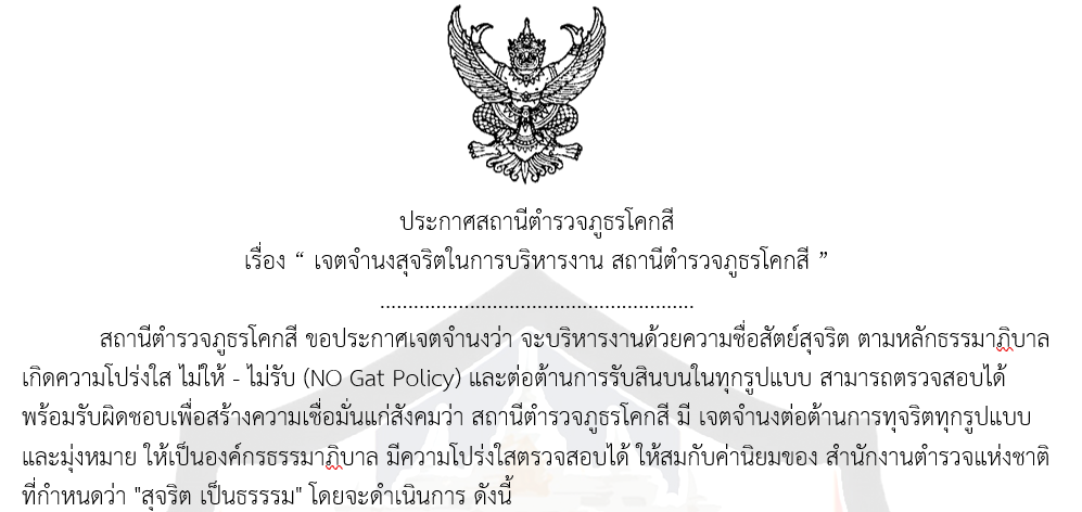 เรื่อง “ เจตจำนงสุจริตในการบริหารงาน สถานีตำรวจภูธรโคกสี ” สถานีตำรวจภูธรโคกสี ขอประกาศเจตจำนงว่า จะ