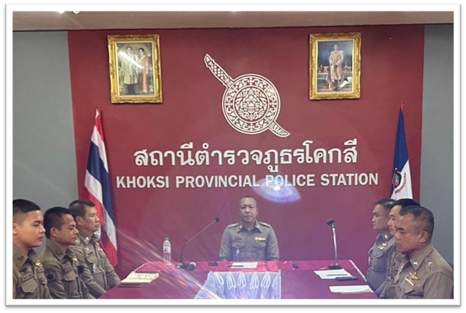 พ.ต.ท.ธวัชชัย มุริจันทร์ สว.สภ.โคกสี พร้อม ร.ต.อ.ประเทือง ทองสมบติ รอง สว.สส.สภ.โคกสี หัวหน้าชุดสืบสวน ปล่อยแถว พร้อมทั้งชี้แจงภารกิจให้ปฏิบัติตามกฎหมาย อย่างเคร่งครัด ไม่ให้เรียกรับ ทรัพย์สินหรือ ประโยชน์อื่นใด เพื่อช่วยเหลือผู้กระทำผิดทุก กรณี
