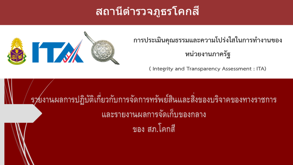 เอกสารรายงานผลการปฏิบัติเกี่ยวกับการจัดการทรัพย์สินของทางราชการ ของบริจาค การจัดเก็บของกลาง