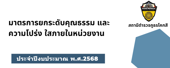 เรื่อง “ เจตจำนงสุจริตในการบริหารงาน สถานีตำรวจภูธรโคกสี ” สถานีตำรวจภูธรโคกสี ขอประกาศเจตจำนงว่า จะ