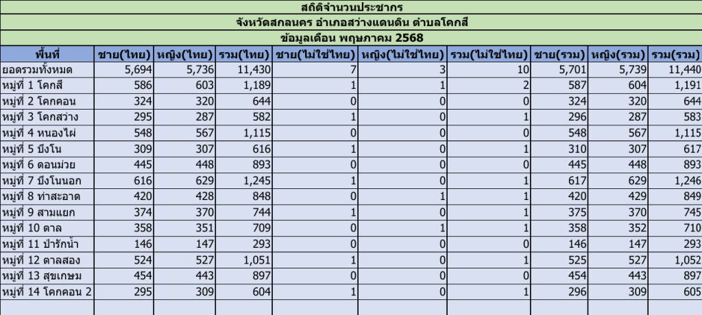 ข้อมูล ณ วันที่ 1 พฤษภาคม 2568